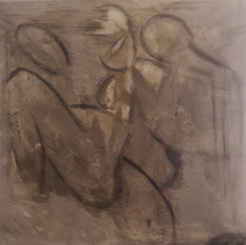 12/25, Kreide, Kohle, Lack mit Strukturmaterial auf Leinwand, 80 cm x 80 cm x 4 cm